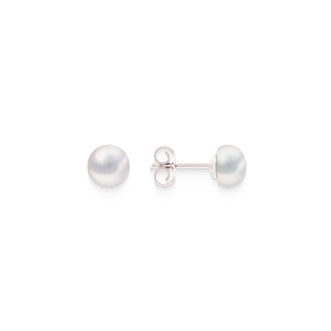 Hochwertige Ohrstecker aus platiniertem 925 Silber mit strahlend weißen Süßwasser-Zuchtperlen – langlebig, anlaufgeschützt und in verschiedenen Größen erhältlich.