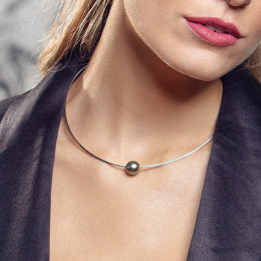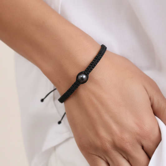 Perlen Ohrstecker in anthrazit – 925er Silber, Button-Form