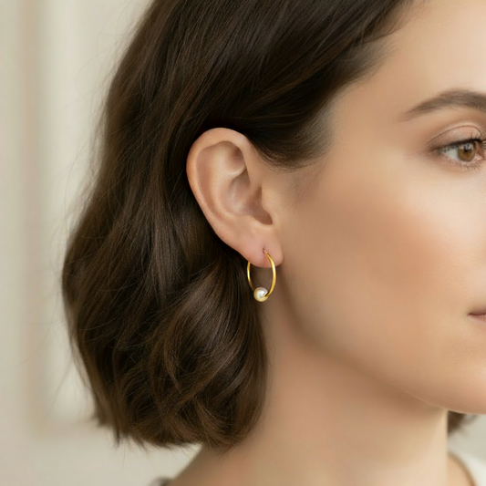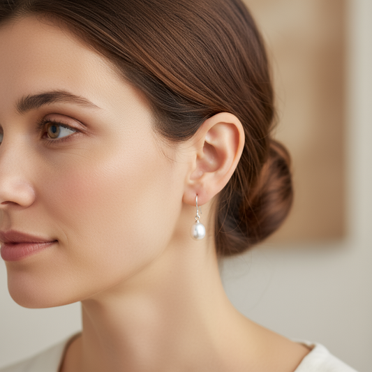 Perlen Ohrstecker grau – 925er Silber, Button-Form