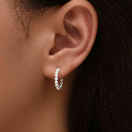 - Creolen mit Perle – Silber oder Gold: Klassische Creolen, veredelt mit schimmernden Perlen, erhältlich in edlem Silber oder strahlendem Gold.