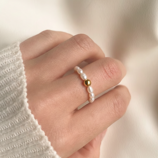 • Elastischer Perlenring: Ein flexibler Ring mit hochwertigen Süßwasserperlen, der sich deinem Finger perfekt anpasst.