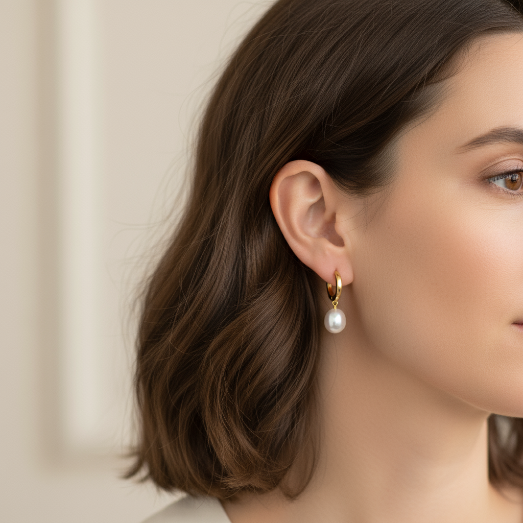 Diese zarten Scharniercreolen verbinden modernes Design mit klassischer Eleganz. Jede Creole trägt eine fein schimmernde Süßwasserperle, die dem Schmuckstück eine feminine und stilvolle Ausstrahlung verleiht – perfekt für einen eleganten Alltagslook oder besondere Anlässe.